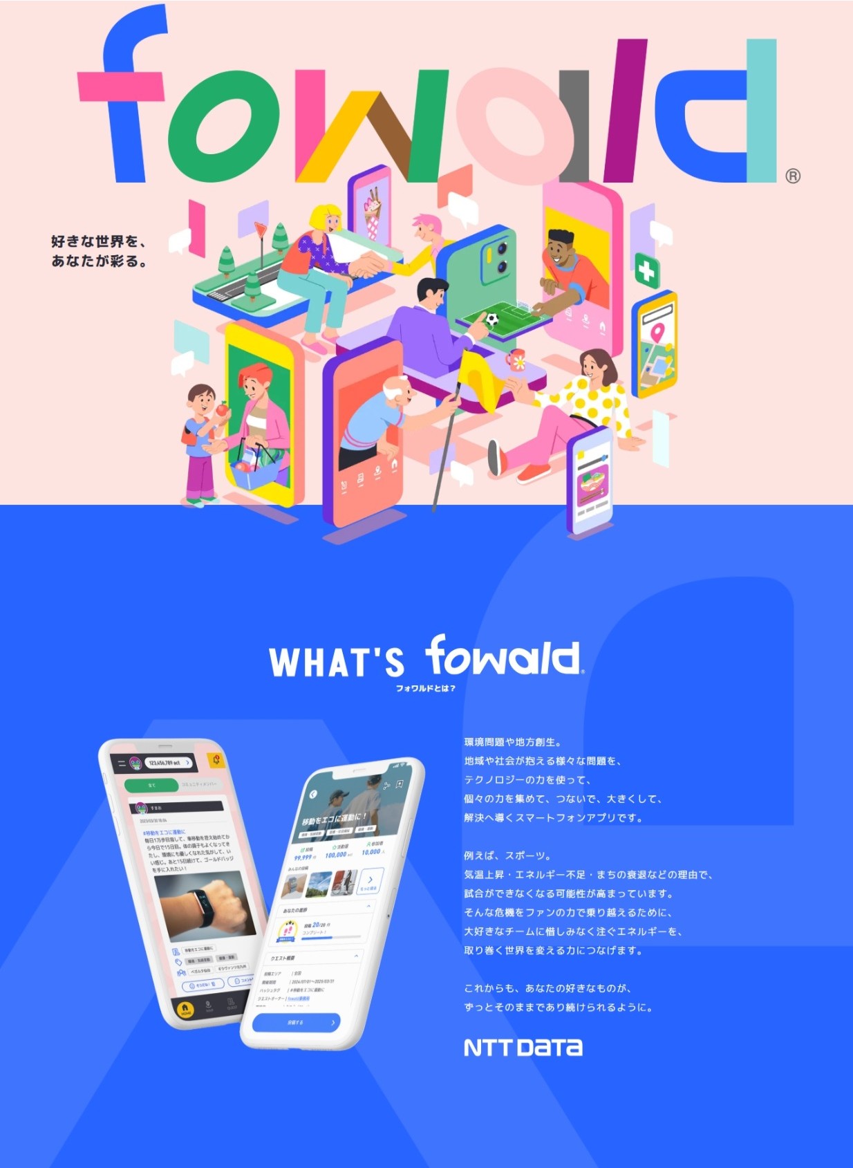 株式会社NTTデータ、学校法人 早稲田大学、株式会社地域創生Coデザイン研究所とJリーグ九州8クラブが共同で、社会貢献アプリ「fowald」を活用した企画「九州グリーンダービー」を開催されております。