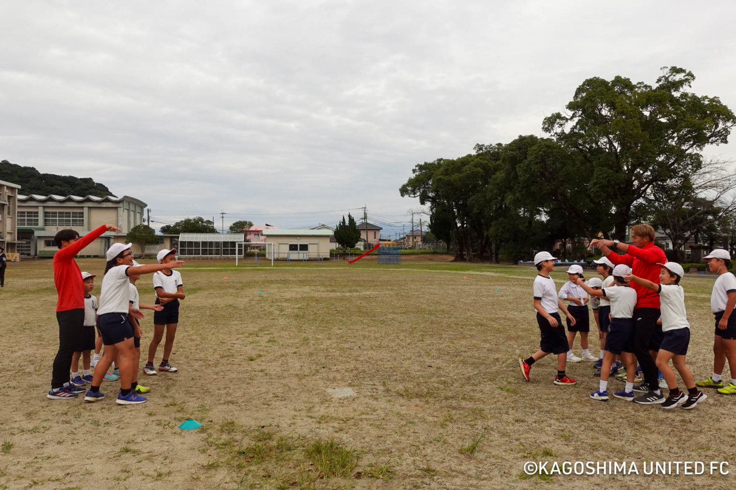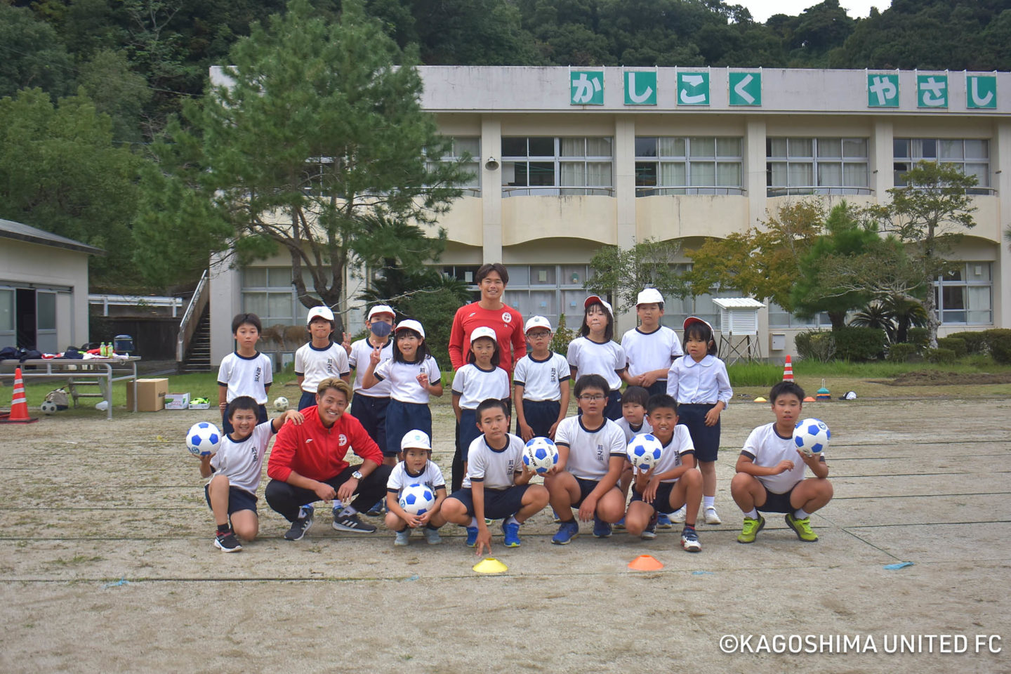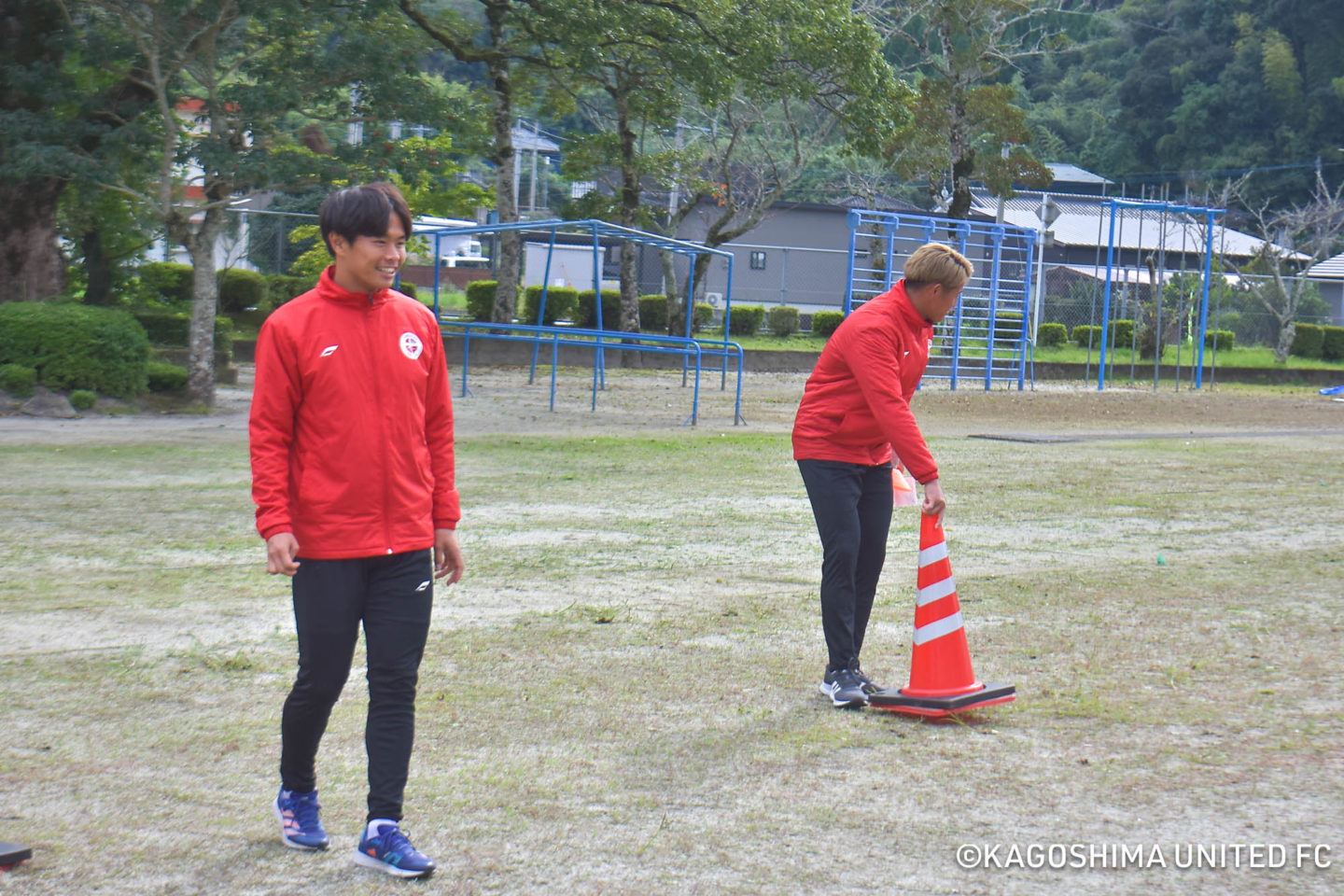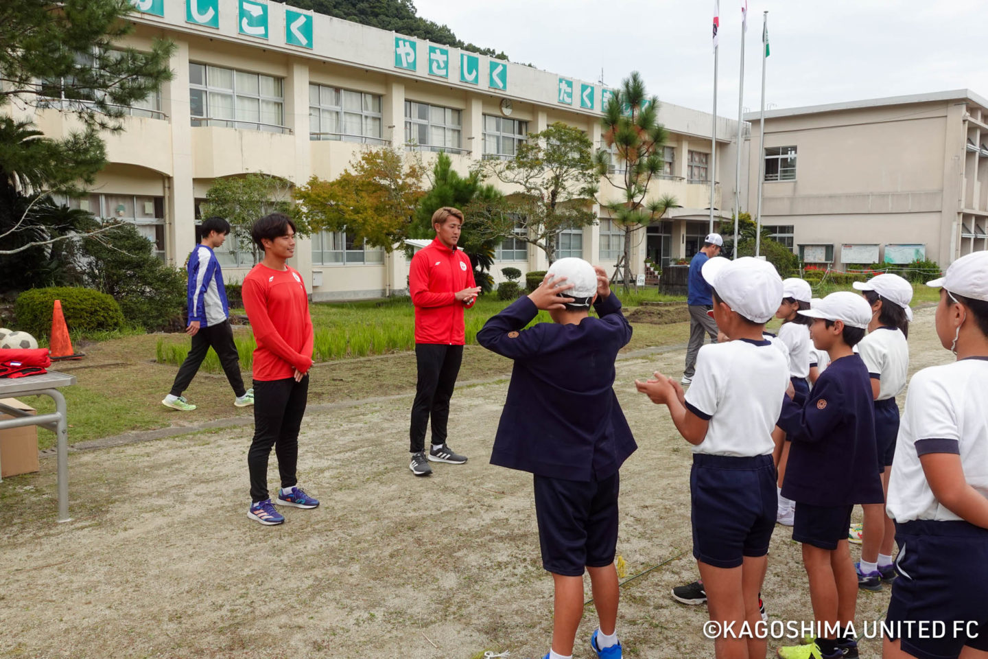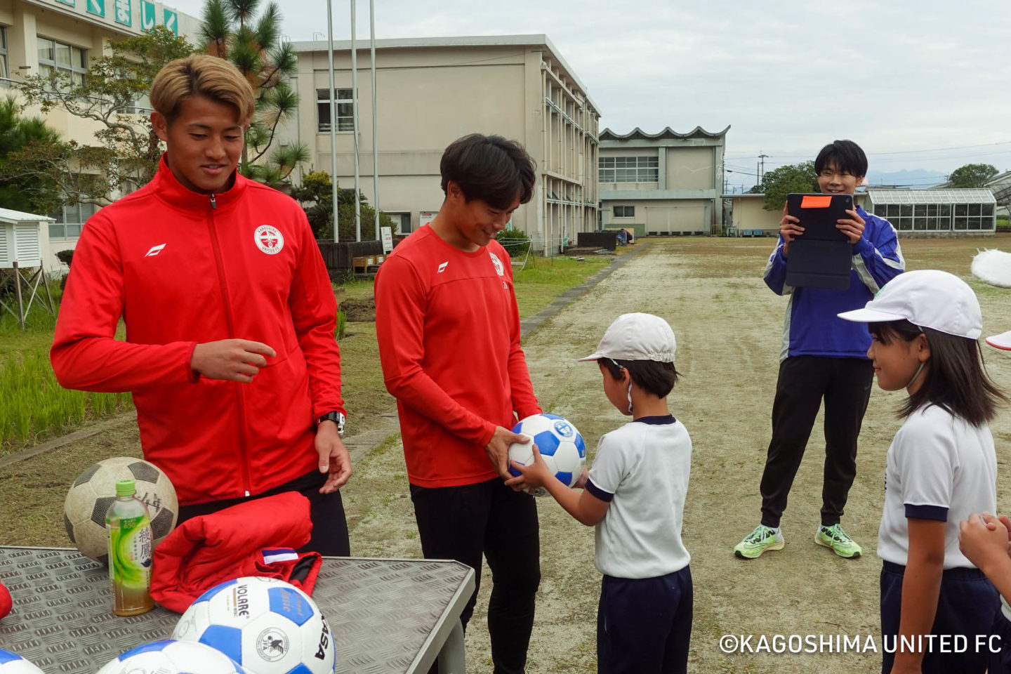 11月19日、川島功奨選手と熊倉匠選手が鹿児島市立前之浜小学校を訪問しました。