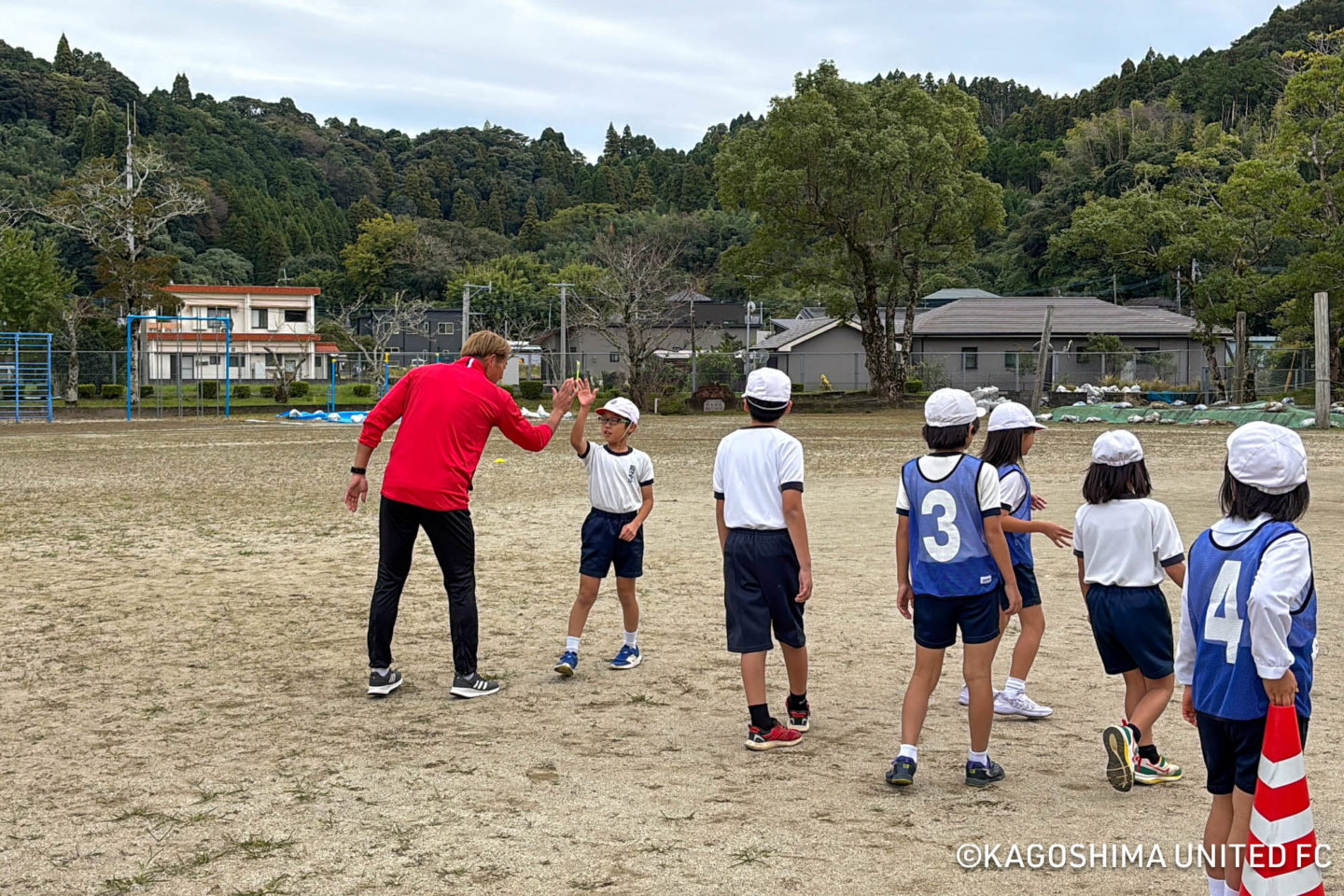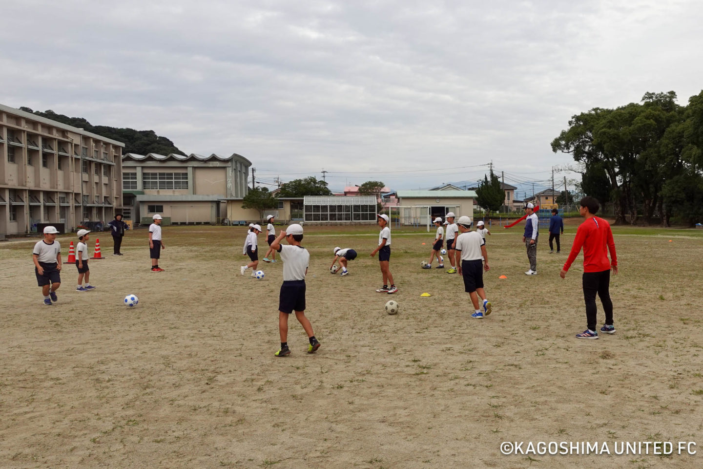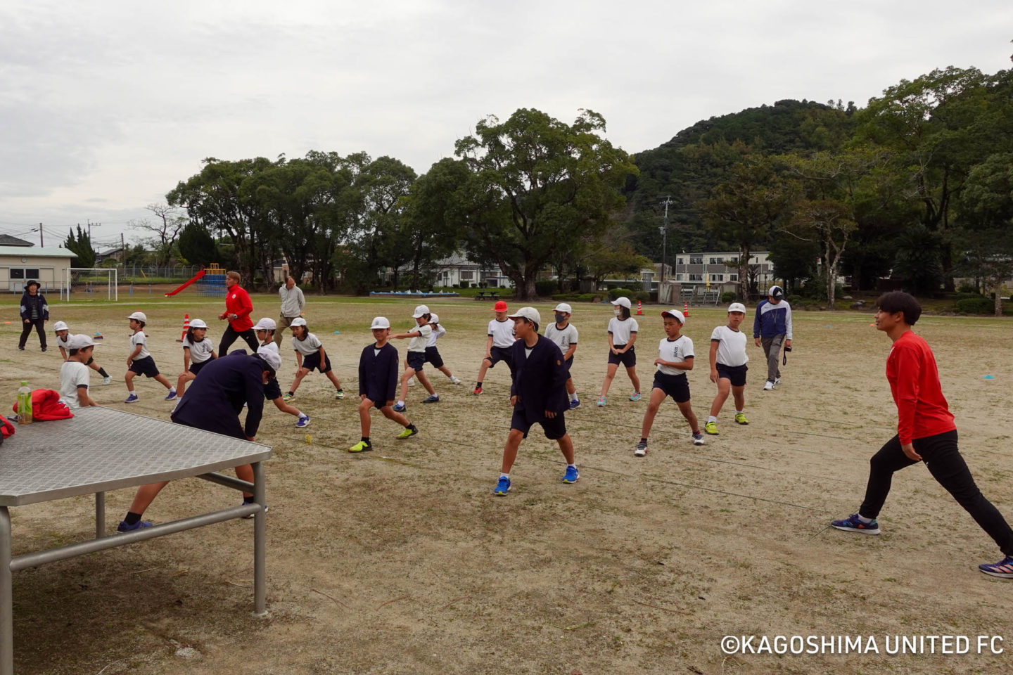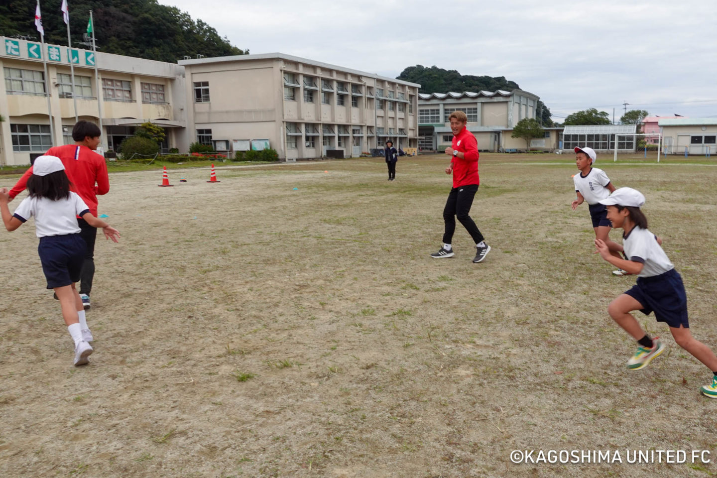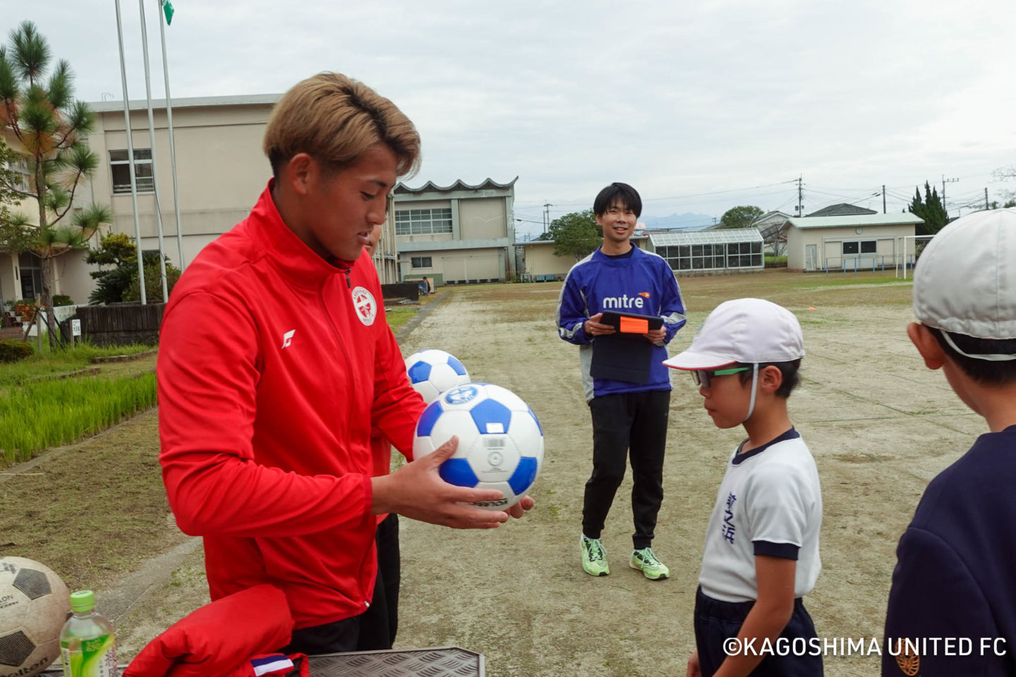 11月19日、川島功奨選手と熊倉匠選手が鹿児島市立前之浜小学校を訪問しました。