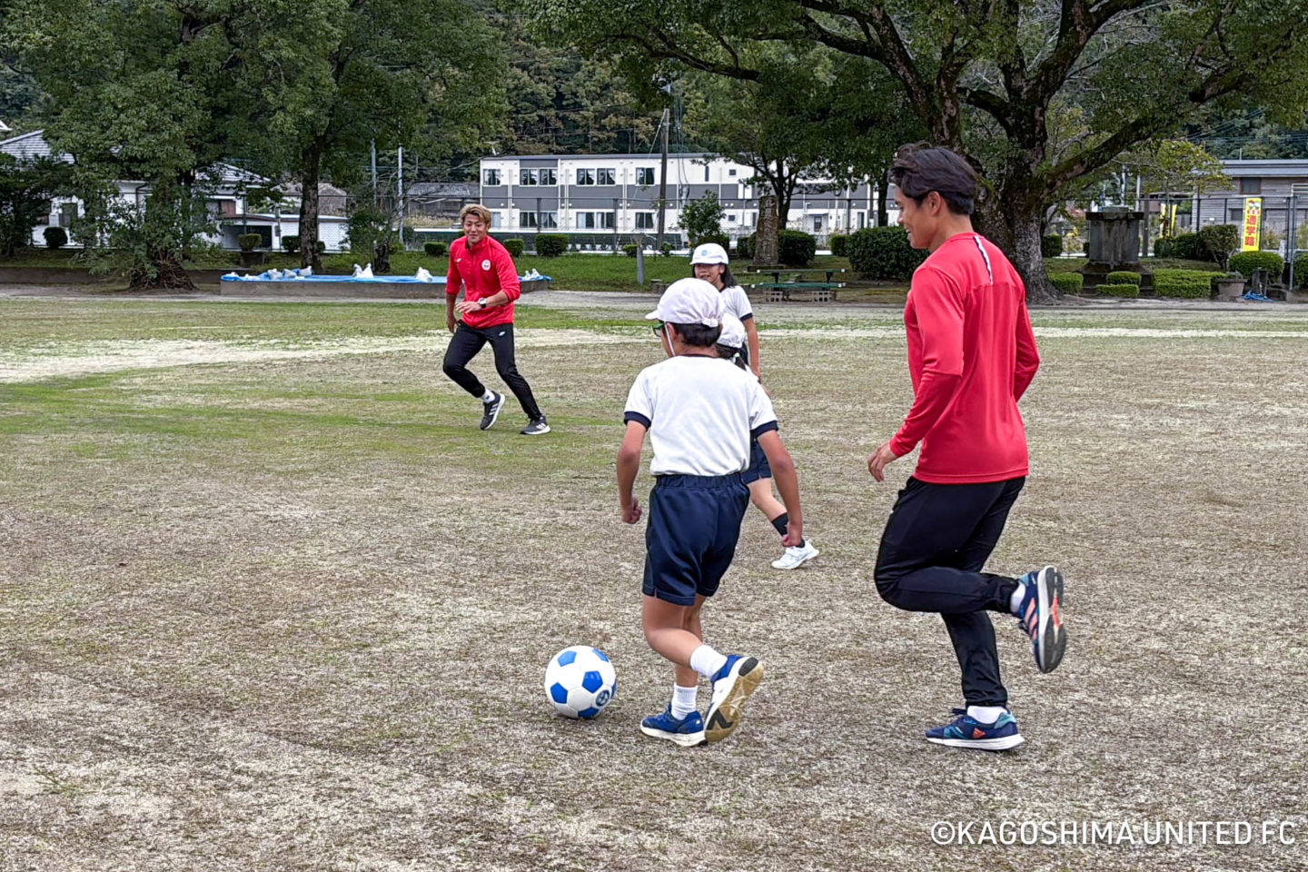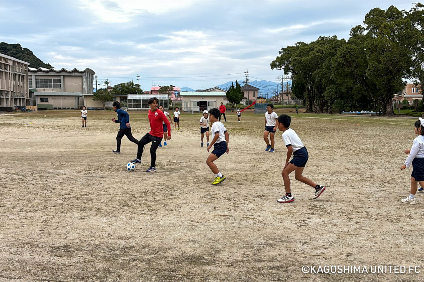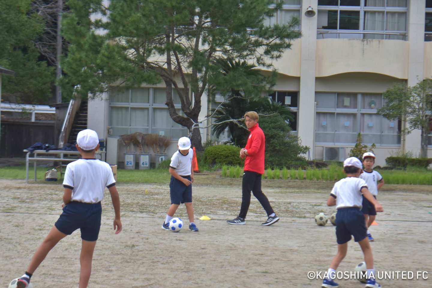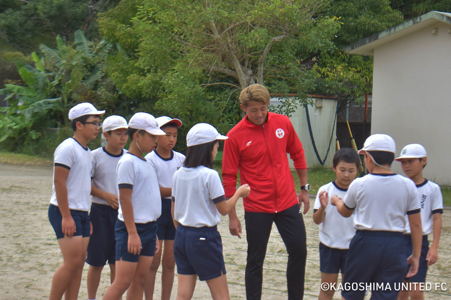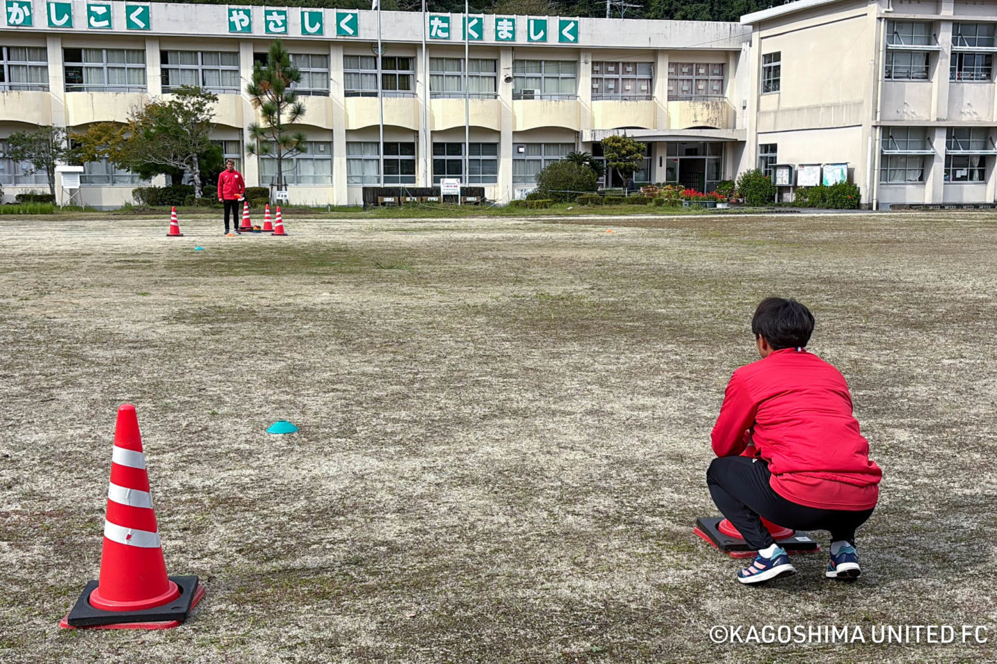 11月19日、川島功奨選手と熊倉匠選手が鹿児島市立前之浜小学校を訪問しました。