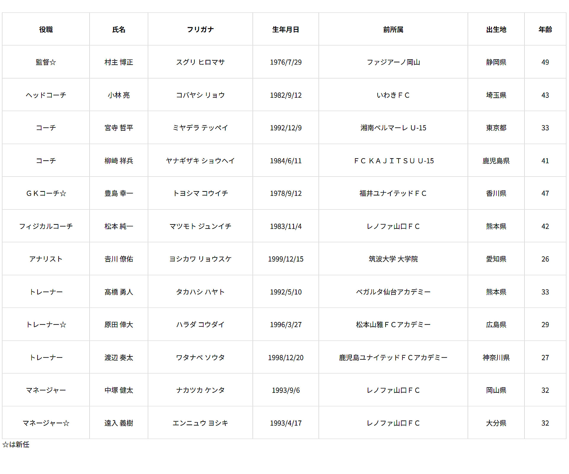 鹿児島ユナイテッドFCトップチーム選手・スタッフについてお知らせいたします。