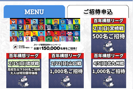 【百年構想リーグ開幕】2/8・2/15・2/22・4/5の合計4試合で3,000名様ご招待