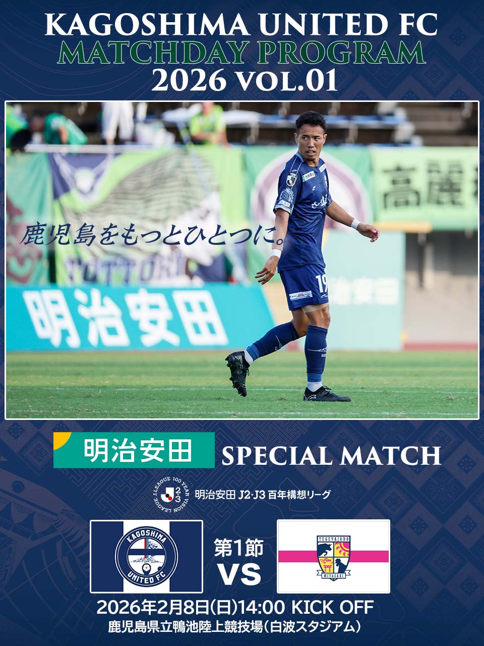 今回は2月8日に行われる明治安田J2・J3百年構想リーグ第1節、鹿児島ユナイテッドFC vs テゲバジャーロ宮崎のマッチデープログラムです。