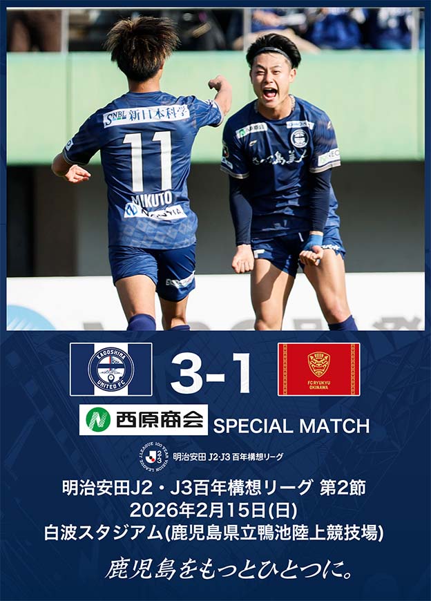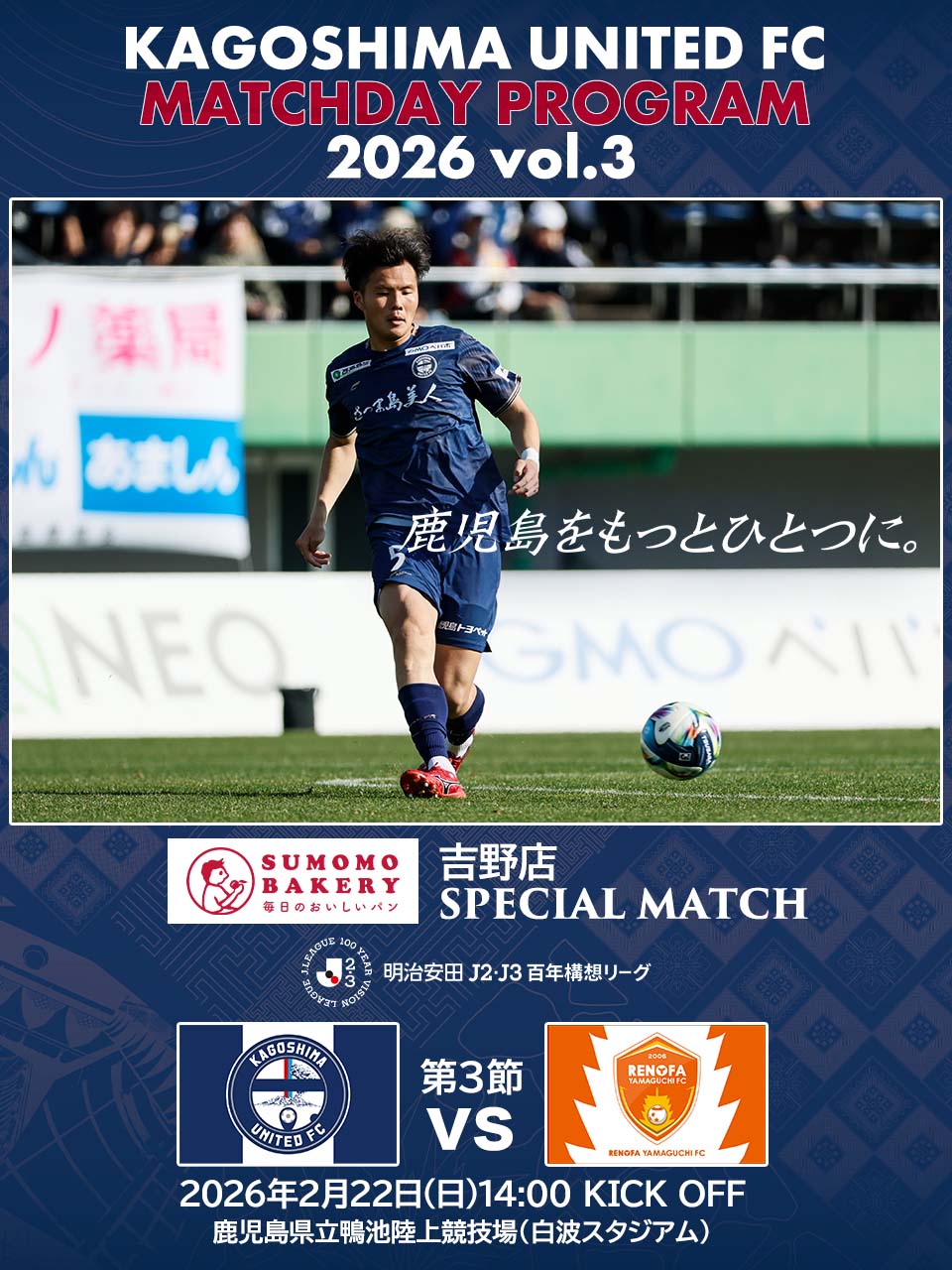 今回は2月22日に行われる明治安田J2・J3百年構想リーグ第3節、鹿児島ユナイテッドFC vs レノファ山口FCのマッチデープログラムです。
