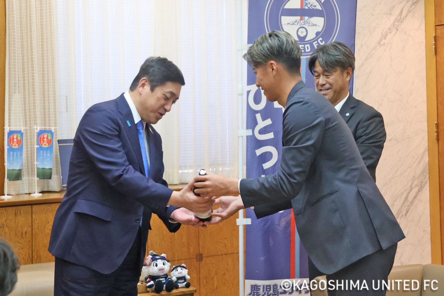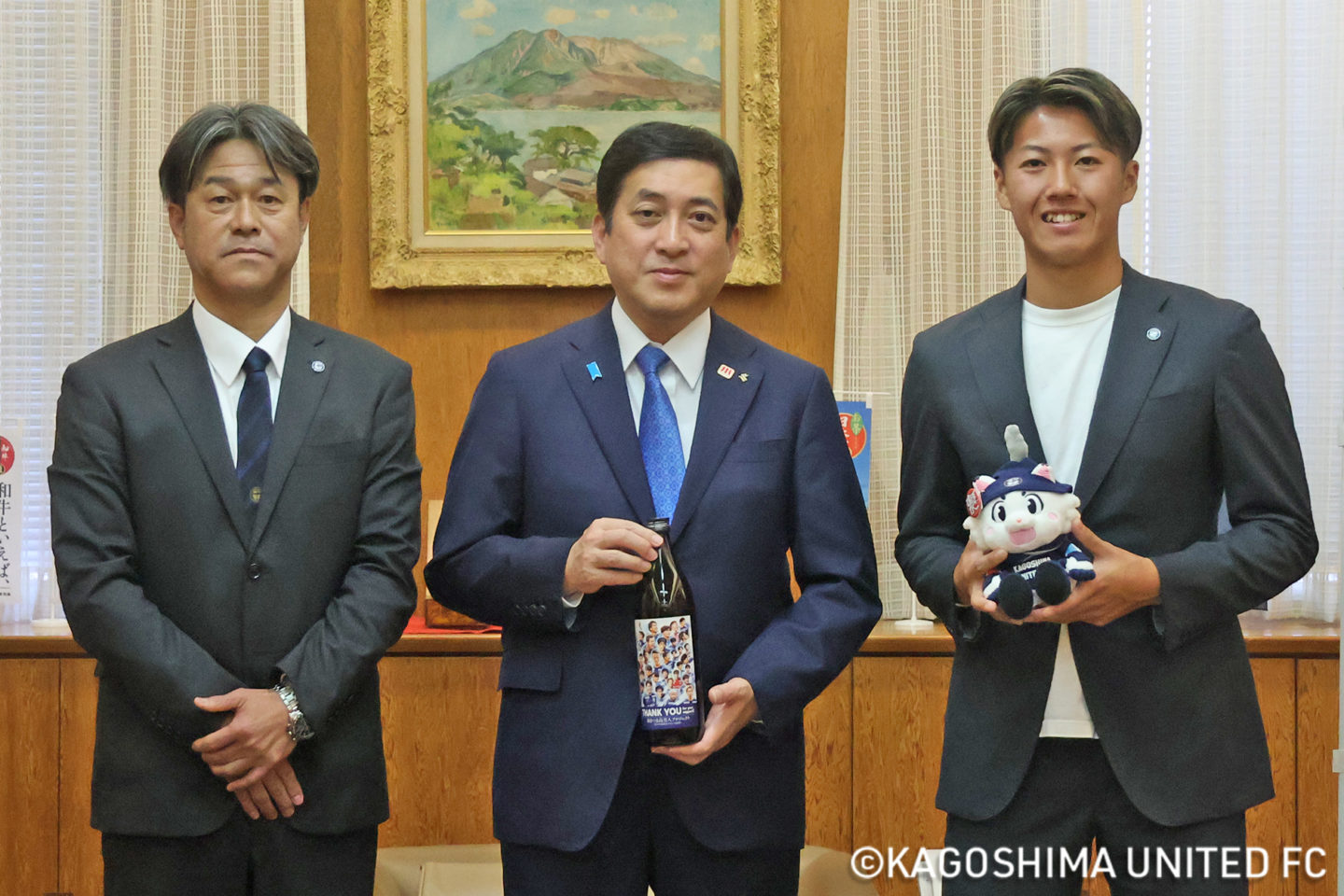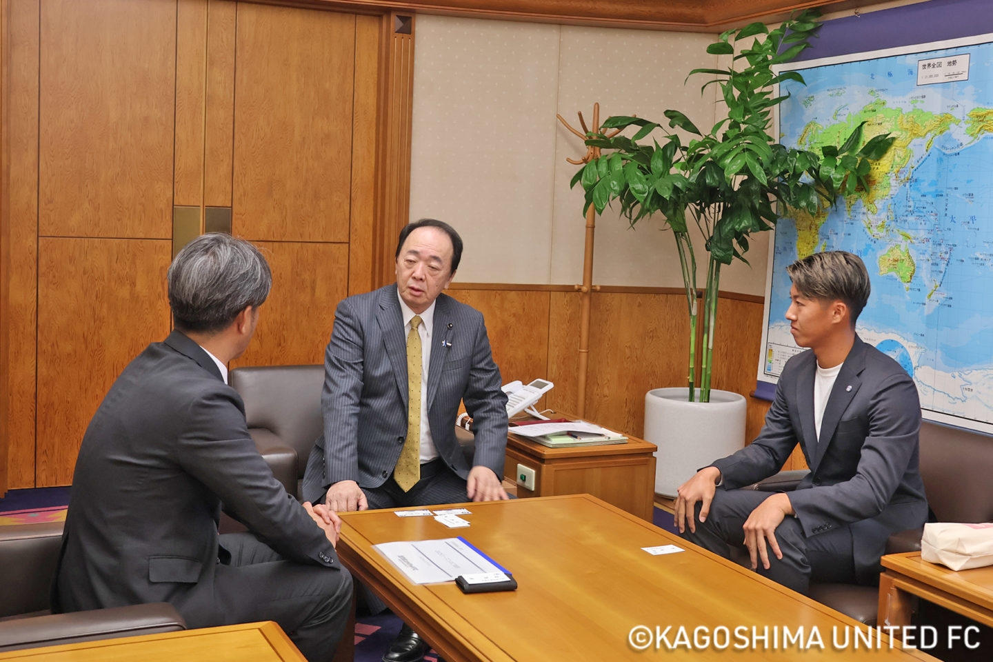 本日、塩田康一 鹿児島県知事に、クラブ代表 湯脇健一郎、武星弥 選手が表敬訪問し、2025シーズン終了のご報告と厚いご支援の御礼をお伝えしました。