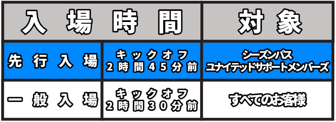先行入場時間(キックオフ2時間45分前から2時間30分前)はお1人様1席の座席確保となります。