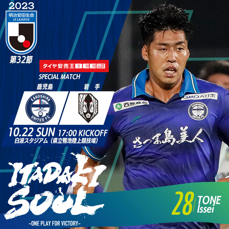 【10月22日(日)第32節 いわてグルージャ盛岡戦】タイヤ安売王ビーラインスペシャルマッチ 試合情報