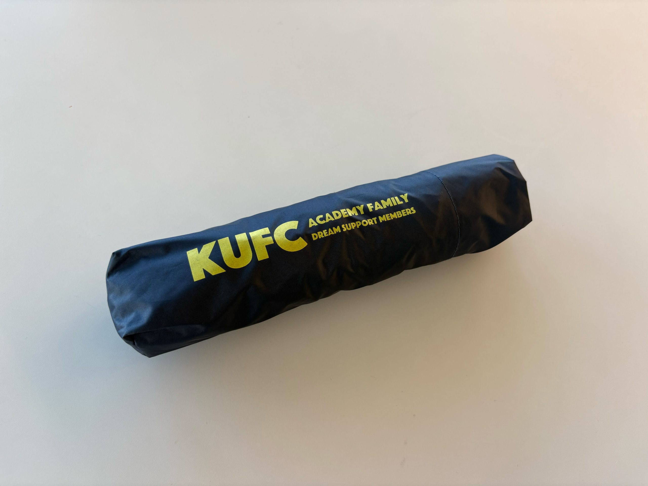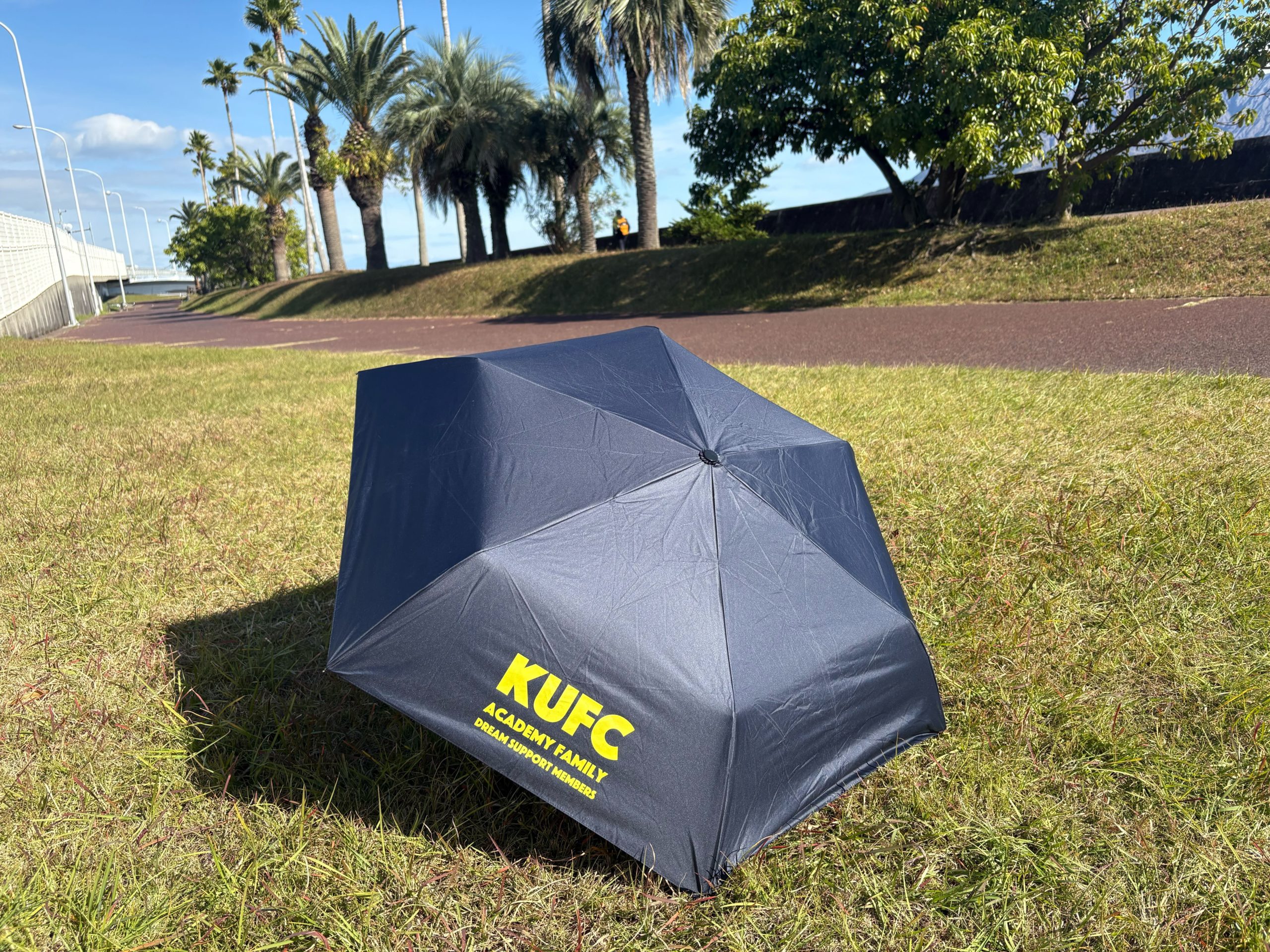 クラブのグッズとして傘は初登場。クラブカラーのネイビーの傘ににアカデミーロゴをデザイン。遮光率100%で晴れの日も雨の日も活躍出来ます!※白波スタジアムでの観戦時は使用不可となります。